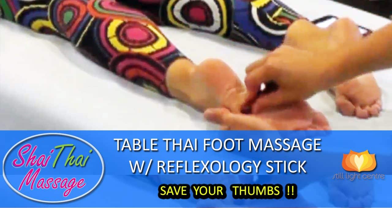 LEARN TO GIVE A TABLE THAI FOOT MASSAGE WITH A REFLEXOLOGY STICK & SAVE YOUR THUMBS!! One thing I’ve come to discover in 16 years of teaching is that almost everyone loves a foot massage! At the same time when you’re using your thumbs all the time, they are not much fun for the giver! Here is a perfect alternative as you learn how to give a great massage for the feet using a Thai reflexology stick! It includes a massage for the heel, the toes, the middle of the foot and the outer edge. Essentially all part of the sole of the foot are massaged with this great tool! Happy, relaxed, massaged feet are also such an effective way to help the back, the legs, the shoulders, and the neck. Essentially your whole body feels better with well massaged feet! This is also easy to practice on a bed, massage table, lawn chair or on the ground. This is part four of a series that will share techniques for Table Thai Massage for the whole body! Click here to watch on YouTube RESOURCES & LINKS MENTIONED IN THIS EPISODE: If you are a studio, spa, or association and would like to offer these courses please contact us here: info@stillightcentre.com To purchase Thai sticks from Amazon.com, here are some options: 3 pack: https://amzn.to/2x8hf8Z 10 pack: https://amzn.to/2NAsgu5 6 piece variety pack: https://amzn.to/2x9gM6j Click here for part one, Table Thai Massage for Neck, Shoulders, Arms & Legs: https://youtu.be/_OMLNQKHYKg Click here for part two, Table Thai Yoga Massage for the Back, Hips, Legs: https://youtu.be/HZaB0DRjFuo Click here for part three, Table Thai Yoga Massage for Hips, Legs Lower Back- Fun & Effective!!: https://youtu.be/U18zGFCXW_0 Click here to watch the secrets to giving a great massage: https://youtu.be/3uFIxKU5hIU Watch more Thai massage techniques explained in either of these two playlists! Thai Massage Techniques: https://www.youtube.com/playlist?list=PLwz3i8g54Cob6izPvIxCwoWCIqx7ZMWkC Thai Foot & Table Thai Techniques: https://www.youtube.com/playlist?list=PL486B129C4AF57E05 Shai’s book Compassionate Touch which dives deep into the benefits of giving massage can be purchased here: https://goo.gl/FH9jvT Study with Shai and his team of teachers in person: https://www.stillightcentre.com/category/courses-calendar/ SAY HI ON SOCIAL: Facebook: https://www.facebook.com/shaiplonski/ Instagram: https://www.instagram.com/shaiplonski/